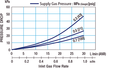“ANR” refers to air with a temperature of 20°C, an absolute pressure of 101.3 kPa (760mmHg), and a relative humidity of 65%. - When installing a pressure-reducing valve, we recommend installing the valve at the outlet side of the dryer to improve dehumidification efficiency.